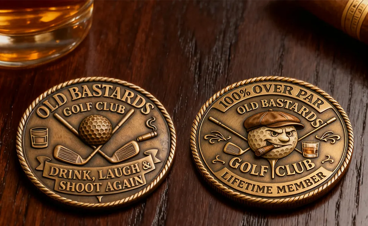 The coin embodies the bold energy of "100% Attitude, 100% Bad Swings, Zero Regrets" — pairing a skull with a whiskey glass to lock in the "wildness" of the course and the "good times" of buddy hangs. It’s a badge for every golfer who laughs at bad shots and cheers over drinks: the older you get, the crazier the fun.